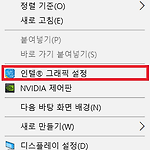 노트북에서 게임을 할 때, 게임화면은 살짝 어둡게, Alt + Tab 으로 바탕화면 나오면 어두운 화면이 밝아지게 되는 현상을 목격할 때가 있습니다. 이는 노트북에서 전원 사용량을 줄여 조금이나마 배터리를 덜 닳게하여 노트북 가용시간을 늘리기 위함입니다. 불편한 사람들은 노트북 자동조절 기능을 Off하면 됩니다. 사실 방법은 간단하나 찾기가 힘들어서 포스팅을 해 보려 합니다. Win 10 기준으로 설정 변경방법을 소개하려합니다. 1. 노트북에 있는 내장그래픽카드 드라이브를 설치해야 한다. (이미 설치되어 있을 수 있습니다.) 각 제조사 홈페이지에서 모델명을 입력하여 내장그래픽 드라이버를 설치하면 됩니다. 2. 바탕화면에서 마우스 우 클릭 후 인텔 그래픽 설정을 클릭한다. 3.전원 클릭 4. 그래픽 전원관..